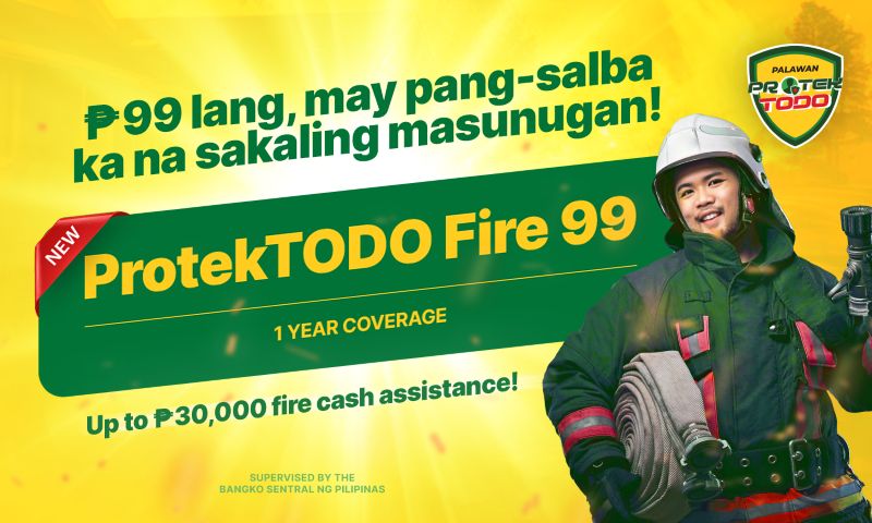 For only Php 99, Palawan ProtekTODO Fire 99 provides up to Php 30,000 in fire cash assistance and an accidental death benefit of up to Php 10,000, offering an affordable and reliable safety net for individuals and families.